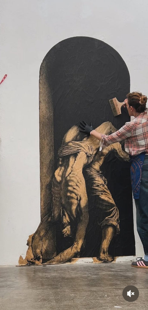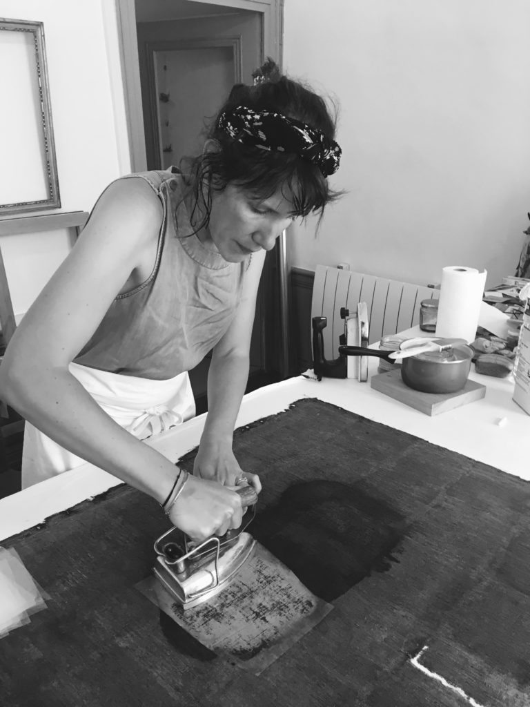 L’espace de l’atelier et sa hauteur de plafond permettent d’accueillir des œuvres de grand format.