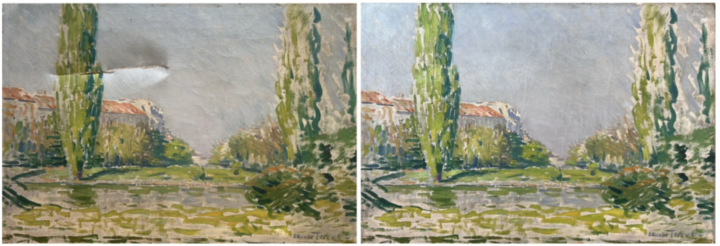 Les altérations affectant le support touchent directement à la conservation de l’œuvre, car elles fragilisent la couche picturale. C’est la restauration conservative qui assure la survie et sa stabilité en tant qu’objet.